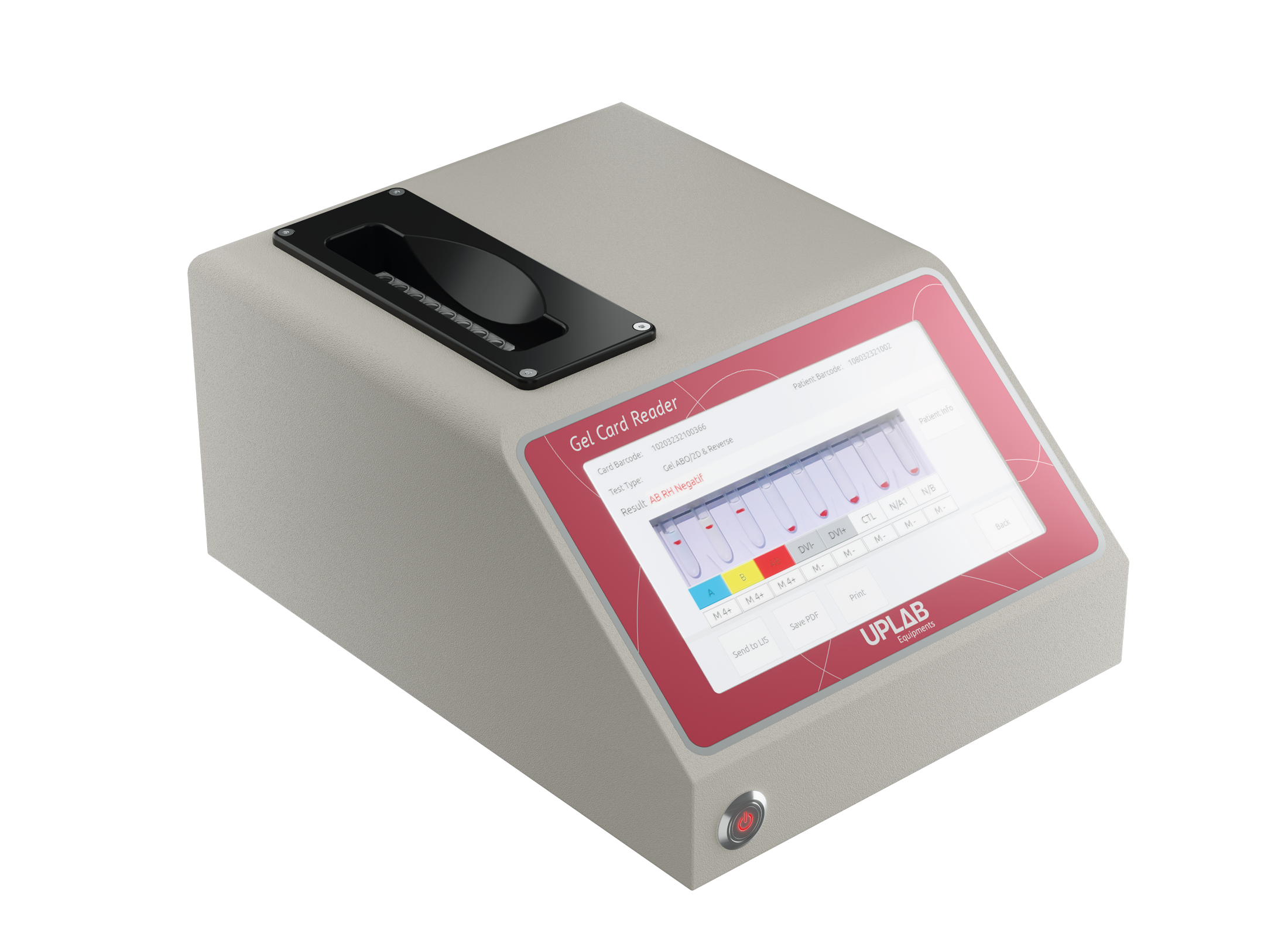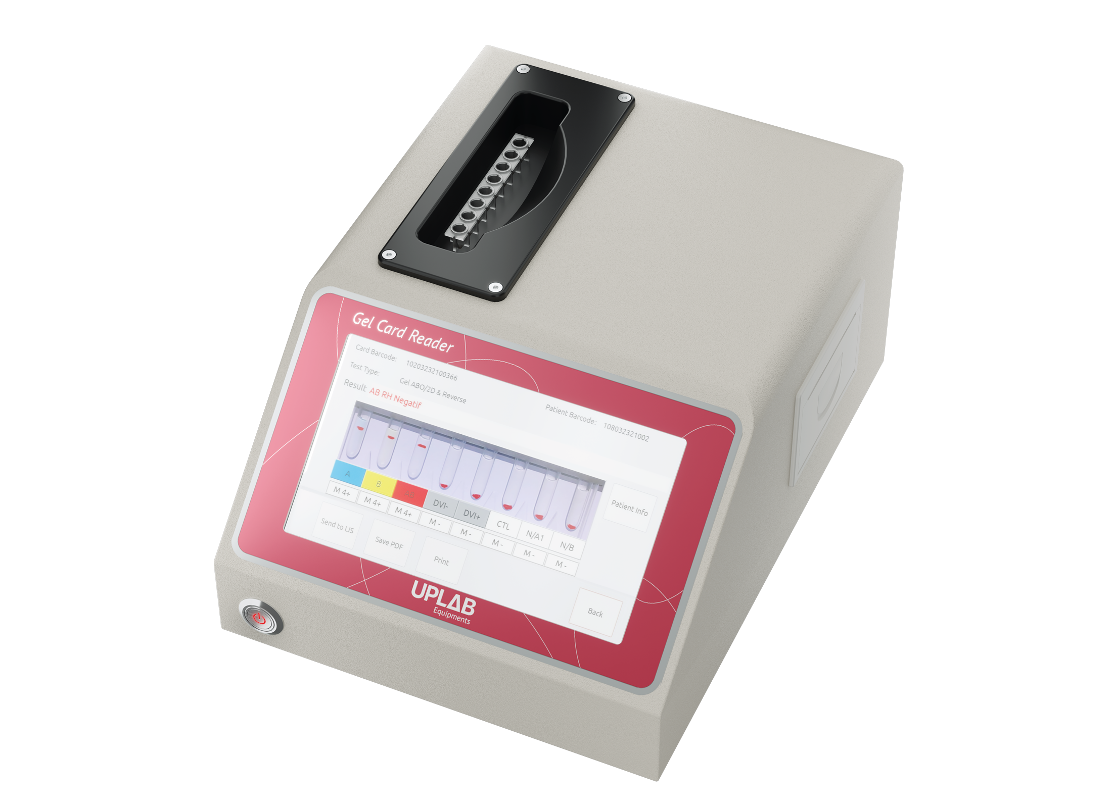 - UPLAB jel kart okuyucu cihazı, jel kartlar üzerindeki sonuçları doğru bir şekilde okumak için tasarlanmıştır. Bu cihaz, jel kartla kan gruplama yöntemi için gerekli olan okuma işlemini hızlı ve doğru bir şekilde gerçekleştirir.